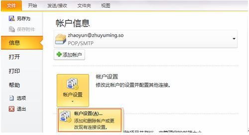 1、在Outlook Office 2010中单击 文件 > 账户设置 > 账户设置(A) 。