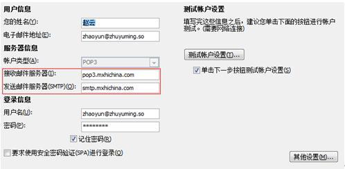 3、进入设置页面后需要更改 POP3 及 SMTP 服务器地址即可: